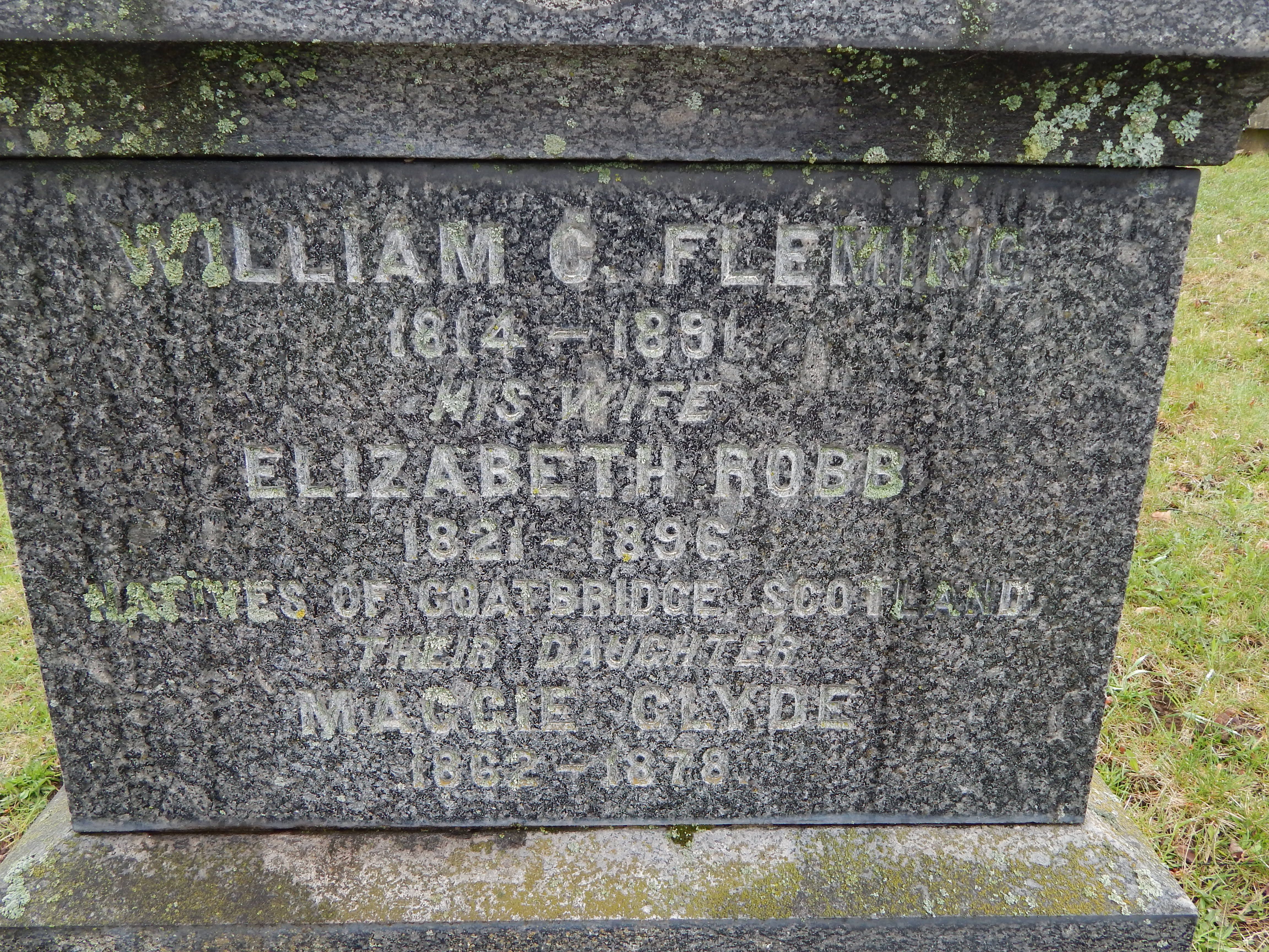 (Age 60 years)2. Mary Clyde FLEMING, b. 1862 d. 1878 (Age 16 years) Family ID F492 Group Sheet | Family Chart Last Modified 28 Oct 2021
